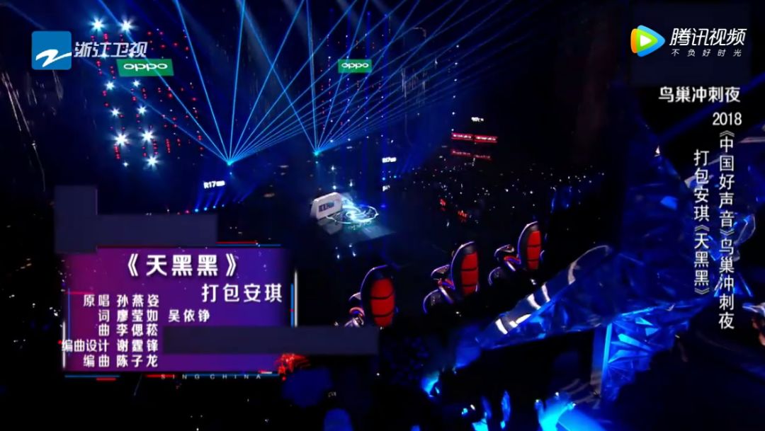 鳥(niǎo)巢沖刺夜的比賽過(guò)程很是精彩,各位導(dǎo)師的選手也是展現(xiàn)出了自己最強(qiáng)的聲音和風(fēng)采。謝霆鋒戰(zhàn)隊(duì)備受看好的選手打包安琪第二位出場(chǎng),演唱了導(dǎo)師謝霆鋒根據(jù)選手嗓音選擇的歌曲《天黑黑》。