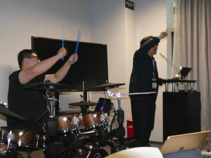 在推介會上,薛曉弟為與會代表詳細介紹了這款新樂器產品。為了讓大家熟悉這款新品,在薛曉弟的帶領下,全體與會者進行了初步的電爵士演奏訓練,強勁的鼓音伴隨著歡聲笑語,氣氛十分融洽。最后,薛曉弟表示對這款新品信心滿滿,與海倫公司的合作肯定前途看好!