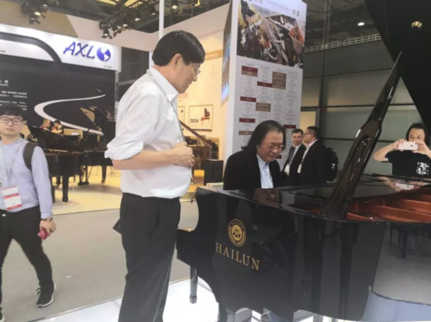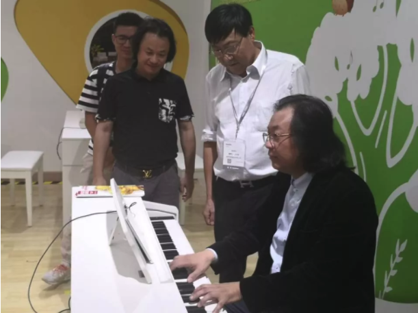 上海音樂學院的鋼琴系副主任、國際鋼琴藝術中心常務副主任周鏗專程到上海樂器展海倫鋼琴展位,受到陳海倫董事長熱情接待。周教授試奏了海倫新出廠的278專業演奏用琴,又到了電鋼琴的展位,仔細了解了有關智能電鋼琴的性能,并以兒童試奏者的身份體驗了智能學習演奏的過程,他興奮地表示當了一次小琴童,對電鋼琴的音色,觸感及所使用的教材都給予了很高的評價!