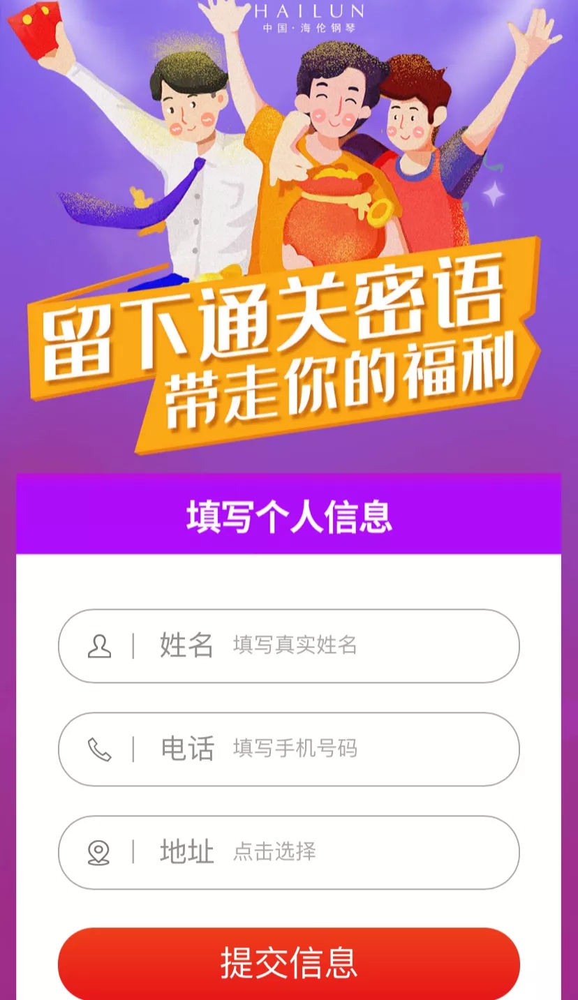 答題成功,頁面將會跳轉至代金券領取界面,點擊您所需購買鋼琴對應的優(yōu)惠券金額,進入信息填寫界面。