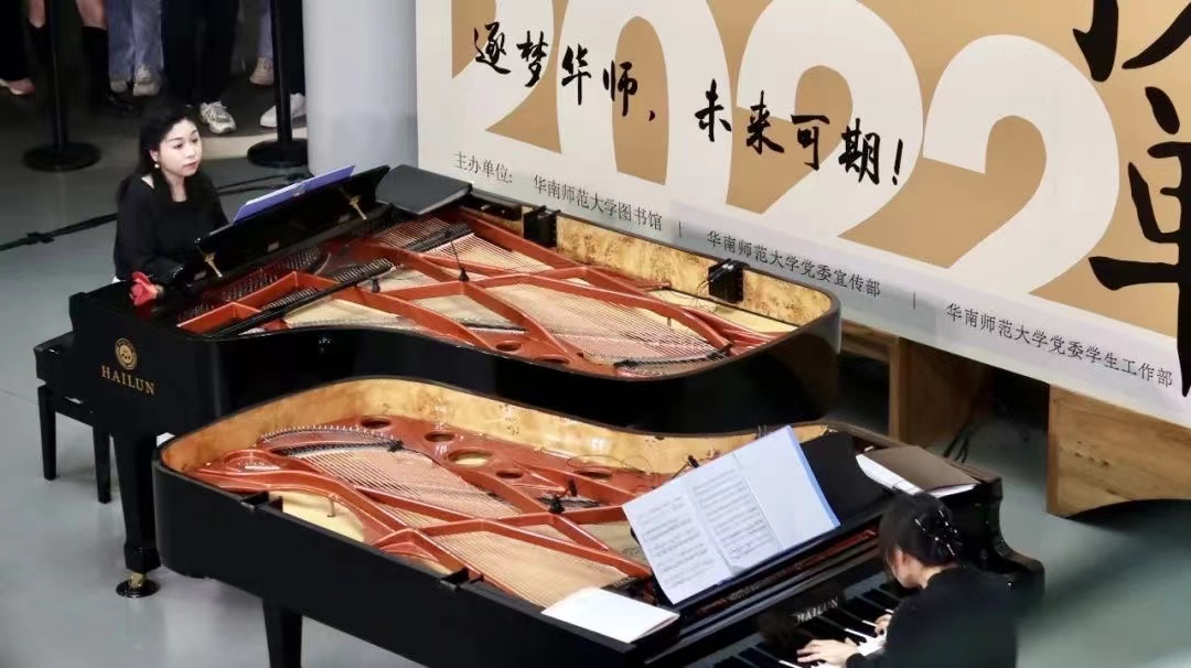 近日,以“校長書單”為主題的“華師樂集”首期音樂會在華南師范大學石牌校園圖書館正式啟幕。“華師樂集”是華南師范大學圖書館與華南師范大學音樂學院聯合推出的跨校園、跨學科的高端美育實踐項目,以音樂為羽翼、不同學科作主題,以每月一次的音樂沙龍為形式,實現高雅藝術進校園,助力美育促成長。