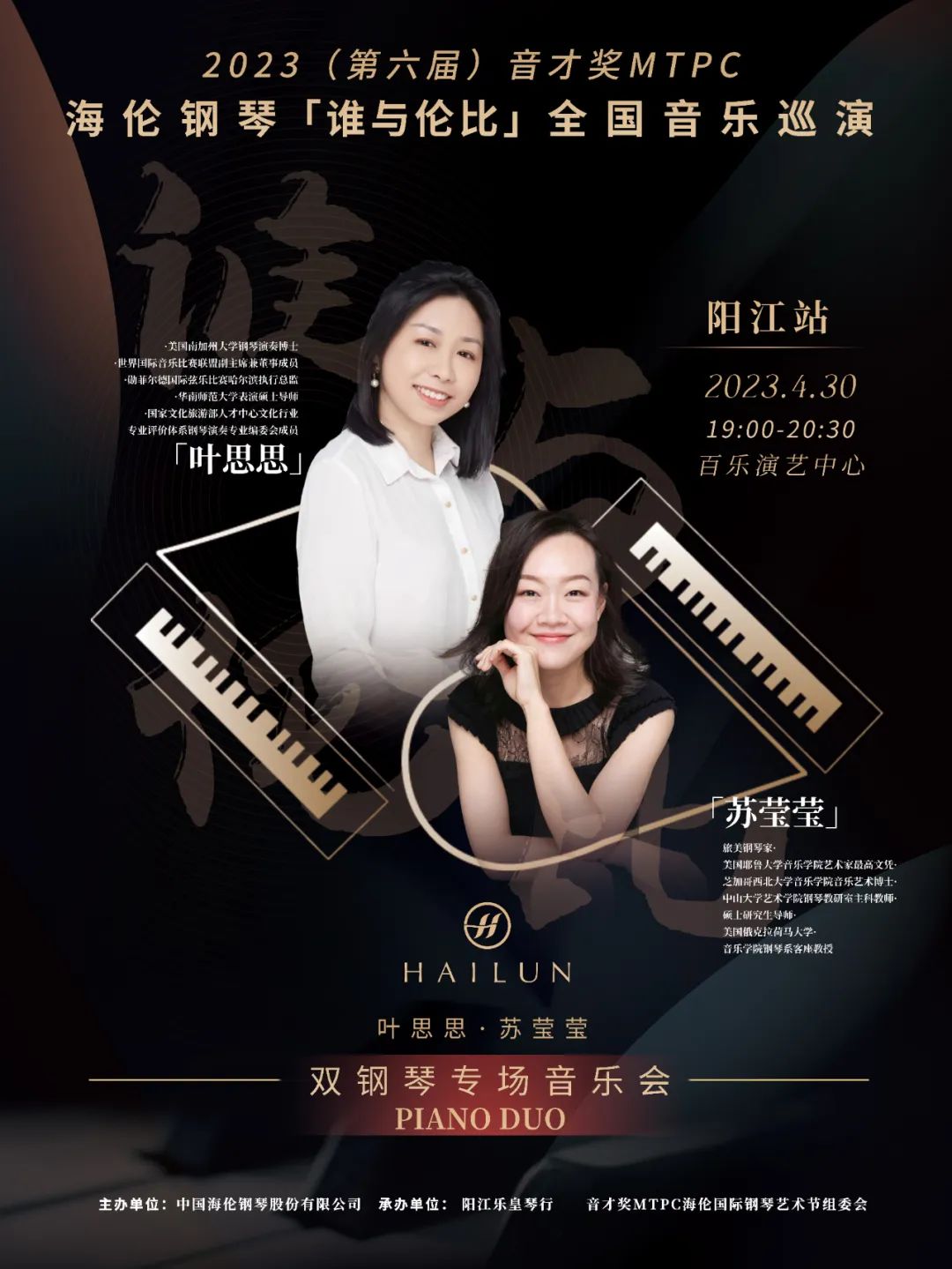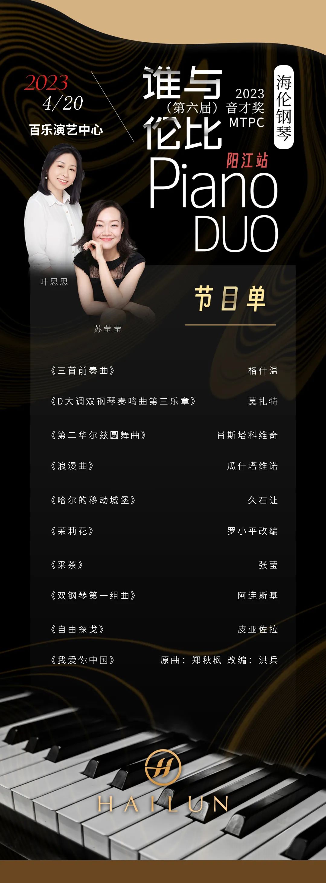演出預(yù)告丨2023(第六屆)音才獎MTPC海倫鋼琴“誰與倫比”全國音樂巡演陽江站—葉思思·蘇瑩瑩雙鋼琴音樂會來啦