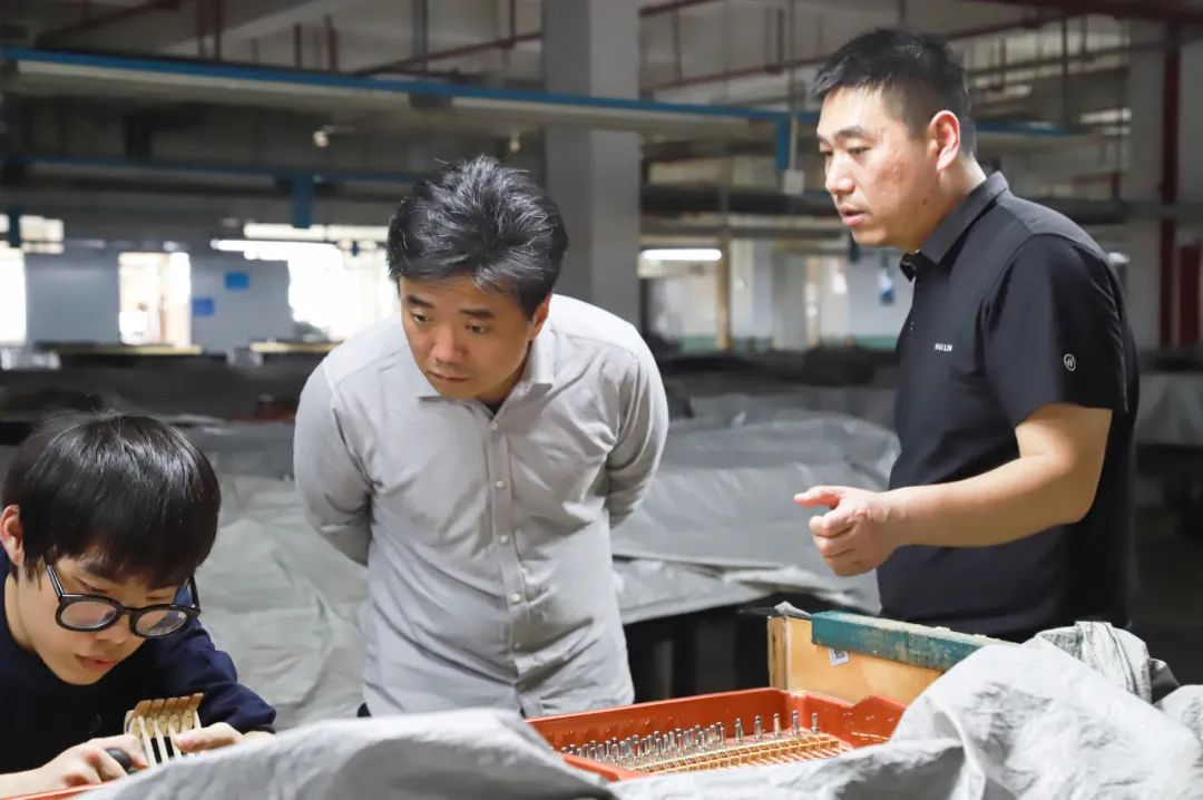 在生產(chǎn)車間,杜飛經(jīng)理熱情地為來賓們作詳細(xì)介紹,楊曦帆院長(zhǎng)零距離地了解了海倫鋼琴從零部件到完全裝配成型的生產(chǎn)過程,對(duì)海倫鋼琴的品牌、生產(chǎn)規(guī)模、質(zhì)量管理等方面贊不絕口。