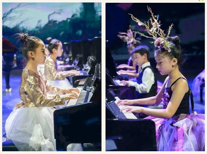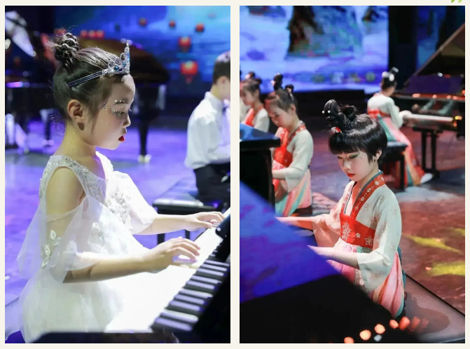 整場音樂會共有五個篇章,分別是:童謠篇、現(xiàn)代流行篇、電影配樂篇、經(jīng)典名曲篇、歌頌祖國篇,小小鋼琴家們以齊奏,四手聯(lián)彈,彈唱,樂團(tuán)等不同的演奏形式帶給聽眾一份如癡如醉的美。