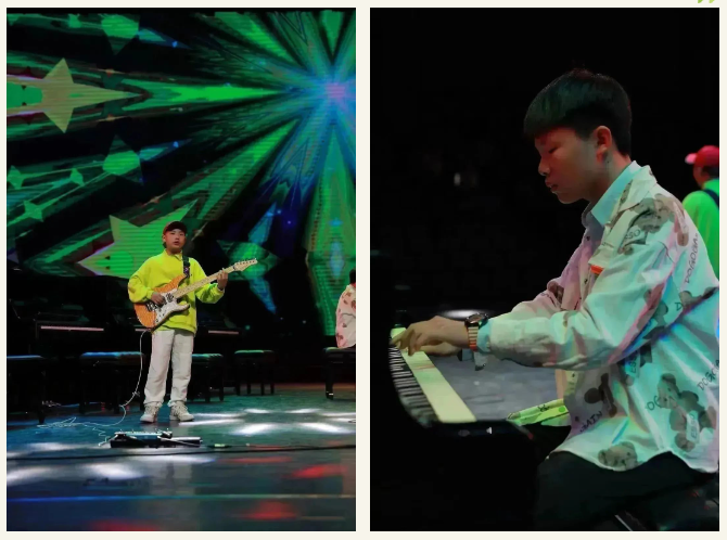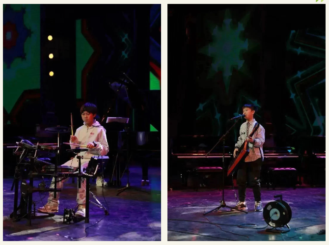 演出現(xiàn)場氣氛熱烈,高潮迭起,特別值得一提的是本次音樂會邀請到了很特別的樂隊——亞歷山大樂隊,他們都是來自清水塘二小,小學(xué)六年級的學(xué)生,共同演繹了他們的原創(chuàng)作品《omens of love》和《雛鷹之歌》,現(xiàn)場讓大家近距離感受電聲樂隊的魅力。