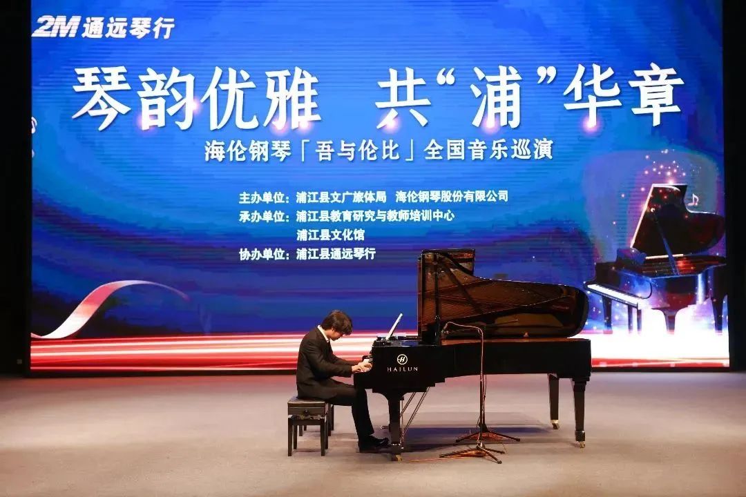 藝術能陶冶人的情操,培養美好的道德品質。在雙減政策下,國家大力提倡學校藝術教育發展,強調藝術教育對學生的重要性。在全省人民喜迎亞運之際,浦江縣文廣旅體局、海倫鋼琴股份有限公司主辦,浦江縣教育研究與教師培訓中心、浦江縣文化館承辦,浦江縣通遠琴行協辦的“琴韻優雅,共“浦”華章——海倫鋼琴「吾與倫比」全國音樂巡演楊磊教授及學生化子忻師生音樂會”在浦江華麗開演。